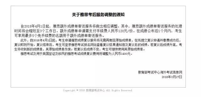 4. 從18年4月1日起,雅思考后服務(wù)有所調整。