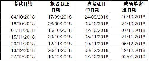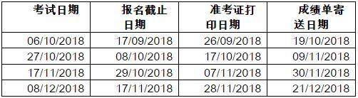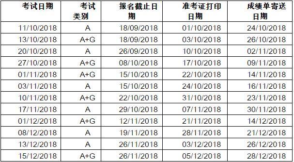 2018年10月至12月用于英國簽證及移民的雅思考試報名截止日期、準考證打印日期和成績(jì)單寄送日期