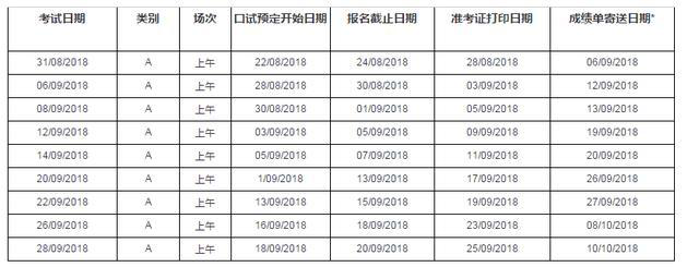 2018年雅思考試機考報名截止日期、準考證打印日期和成績(jì)單寄送日期